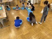 運動会当日は、このスカーフにもう一工夫を加え、元気いっぱい表現運動します。
