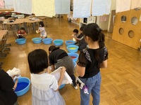 真っ白な布が、みんなの手でカラフルに変身しました。