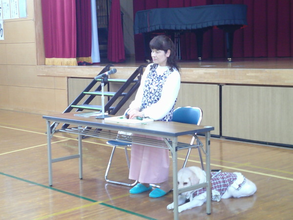 講師の水出さんと、ベテラン盲導犬のジェシーちゃんをお招きし、心あたたまる貴重な時間を過ごしました。