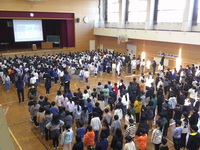 校長が書き初めを披露し、「勇気をもって取り組む1年にしてほしい」とその漢字に込めた想いが発表されました。