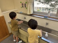 今日から給食が始まります!その前に、昨日給食の準備をする練習をしました。机の上にどのように並べるや手をきれいに洗うなど教わりながら練習をしました。「明日の給食楽しみ!」という声も聞こえてきました。さぁ、今日から給食です!!
