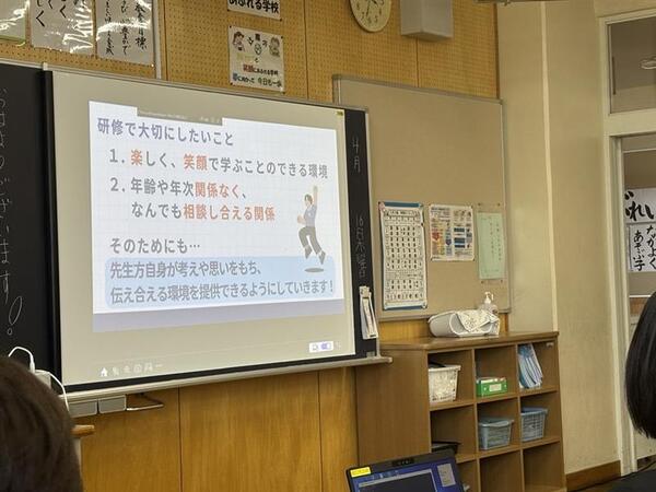 私たちの仕事の1つに“研修”という勉強会もあります。“指導力向上のために”“辻南っ子が積極的に参加する授業をつくるために”といろいろ学んでいます。この研修を通して先生たちもスキルアップ!です。