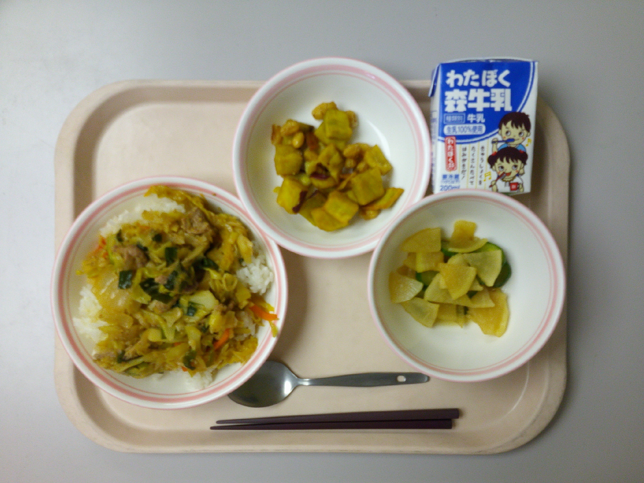 ・ぶたキムチどん ・まめといものかりんとう ・だいこんときゅうりのちゅうかづけ ・牛乳