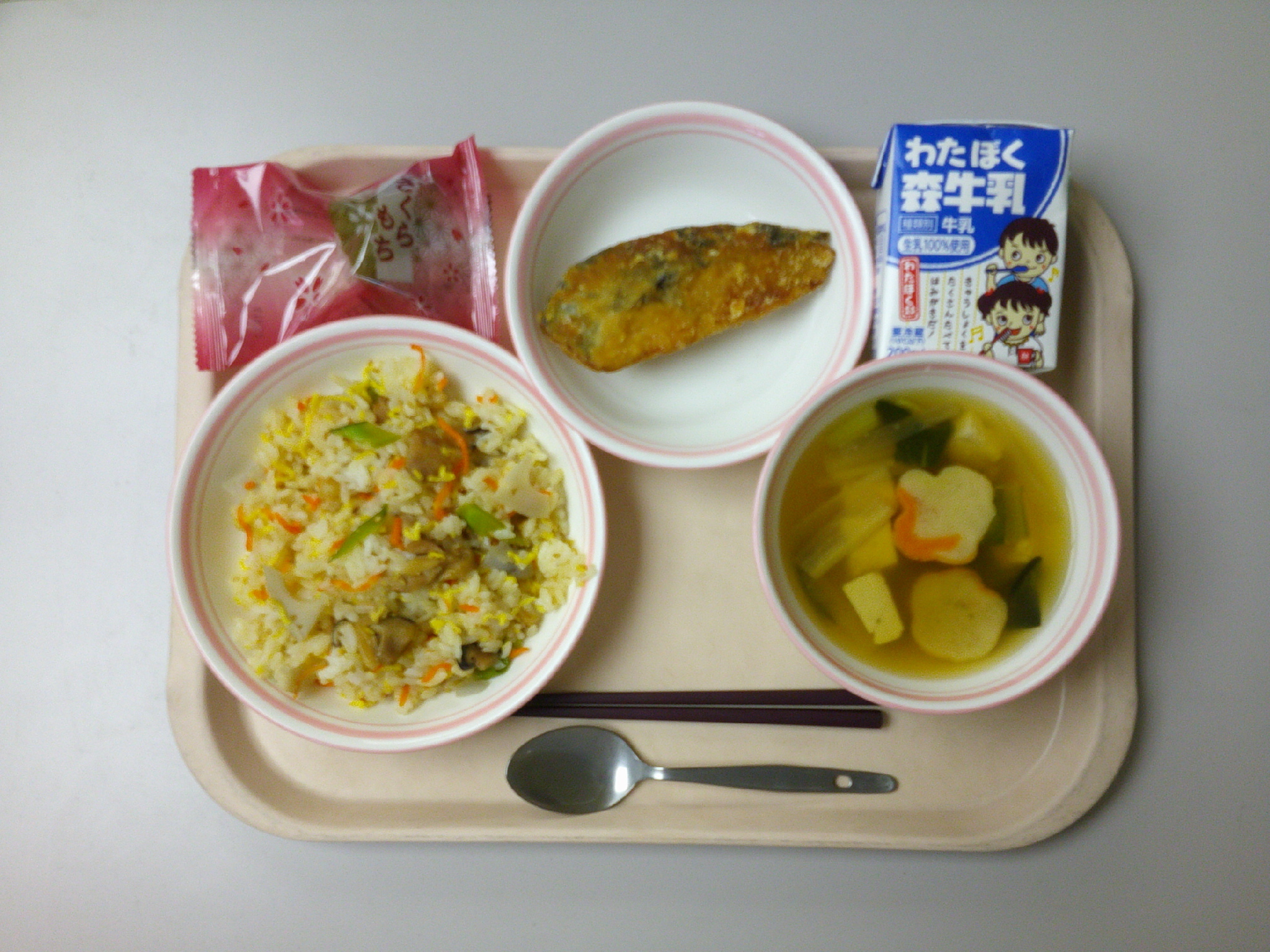 ・ひなずし ・さわらのたつたあげ ・すましじる ・さくらもち ・牛乳