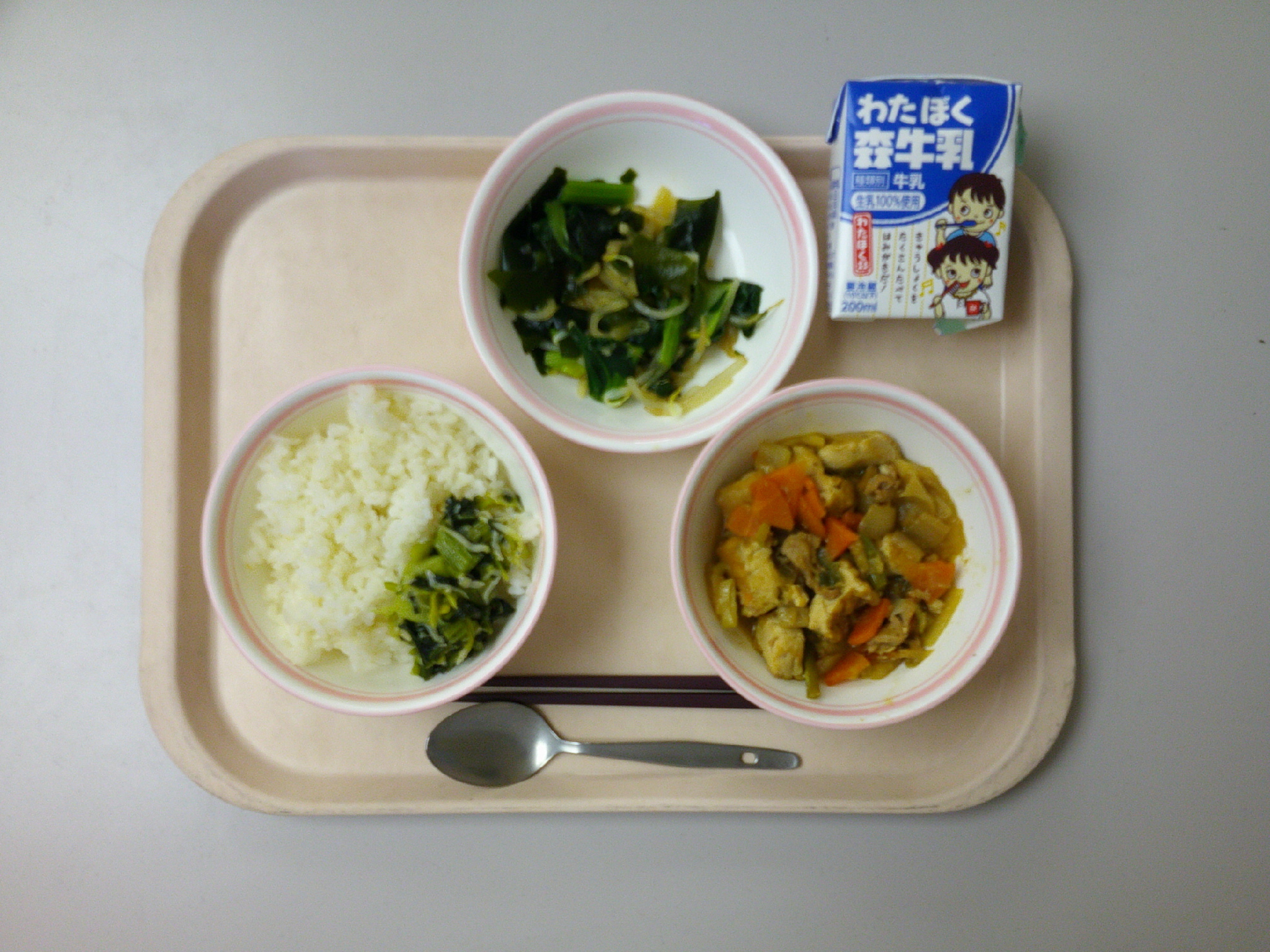・たまごとじうどん ・とうふナゲット ・こまつなとわかめのサラダ ・牛乳