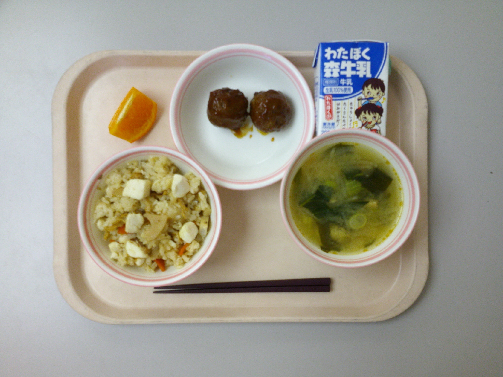 ・たいのおもぶり ・にくだんごのあまからに ・むぎみそのみそしる ・せとか ・牛乳